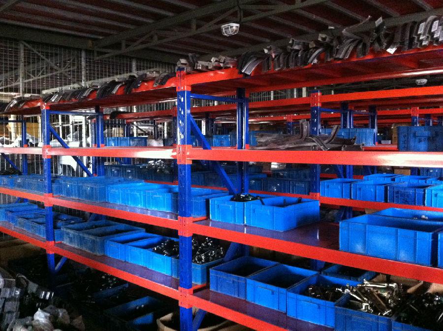 事實上,重型擱板有許多優(yōu)點:柱子是預制結構,鋼卡插入梁和柱之間,鑰匙鎖定以防止脫落。完全組裝結構,可組合,便于安裝和拆卸,柱設置每個75mm調節(jié)孔,根據(jù)貨物的高度。適用于散裝、小批量貨物儲存。