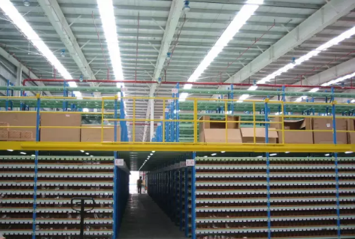 是在已有的鋼平臺(tái)或工作場(chǎng)地上建造一個(gè)中間閣樓以增加儲(chǔ)存面積。這種鋼平臺(tái)可以減小承重梁的跨距,降低建筑費(fèi)用,提高倉庫的空間利用率。閣樓樓板上一般可放輕泡及中小件貨物或儲(chǔ)存期長(zhǎng)的貨物,可用叉車、輸送帶、提升機(jī)、電動(dòng)葫蘆或升降臺(tái)提升貨物。
