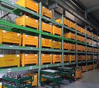 4.可在兩根格檔上加焊鋼板做成梁托,用以承載料箱4個(gè)腳,既保證料箱安全落在貨架上,又節(jié)省了成本。