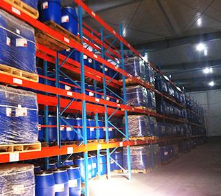 5.6米高位貨架結(jié)合雙面木托盤存放桶裝貨物,案例場(chǎng)景證明貨架承載大,安全可靠。