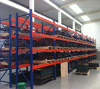 橫梁貨架在倉(cāng)庫(kù)并行分布成若干排,可兩兩背靠組合安裝,其組之間留有一條巷道,供堆垛起重機(jī)、叉車或其他